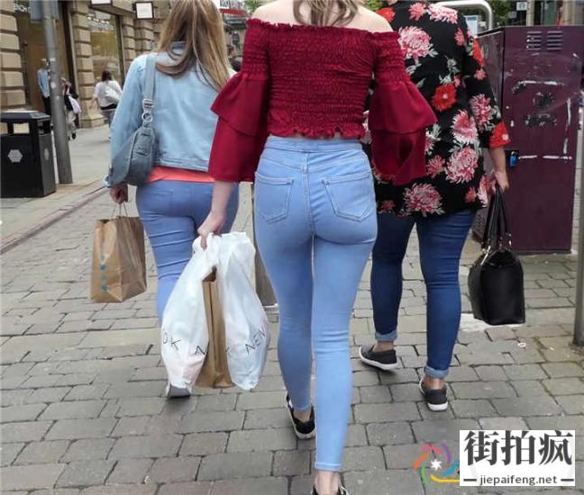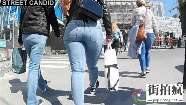街拍蓝色紧身牛仔裤洋妞极品美腿圆润翘臀[MP4/131M]