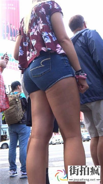 街拍蓝色牛仔热裤极品饱满圆润翘臀金发洋妞[MP4/545M]