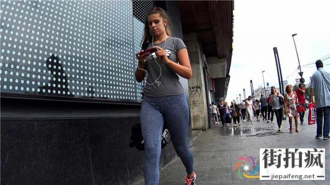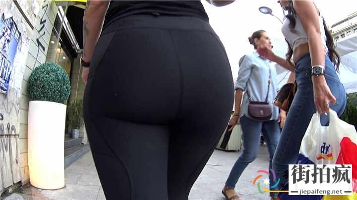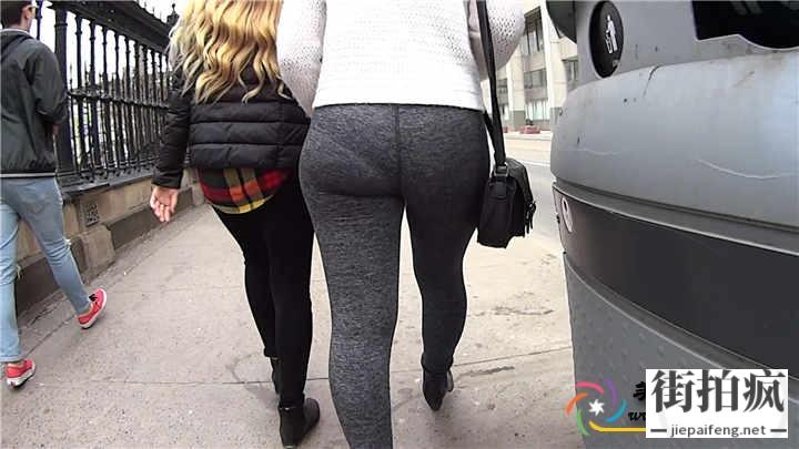 街拍灰色和黑色紧身氨纶裤洋妞极品圆润翘臀[MP4/531M]
