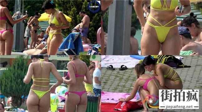 街拍粉色和黄色丁字比基尼两个洋妞极品长腿翘臀[MP4/197M]...