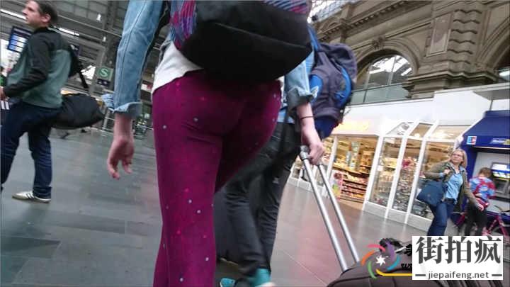 车站跟拍红色紧身裤洋妞长腿翘臀[MP4/484M]