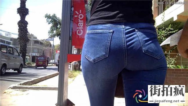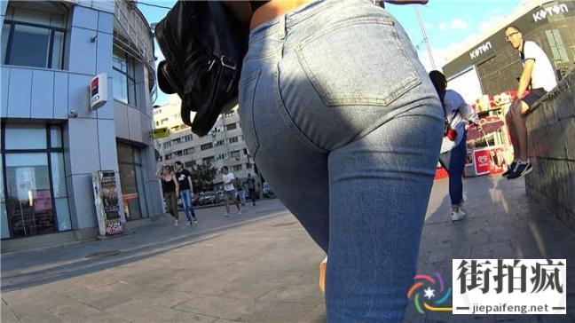 街拍蓝色紧绷牛仔裤洋妞性感饱满翘臀[MP4/102M]