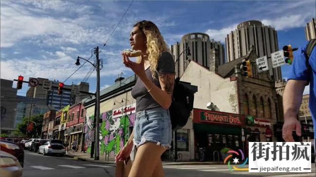 街拍条纹热裤性感长腿圆润饱满翘臀洋妞[MP4/460M]