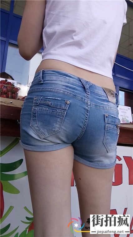 街拍蓝色牛仔热裤极品白腿圆臀美眉[MP4/332M]...