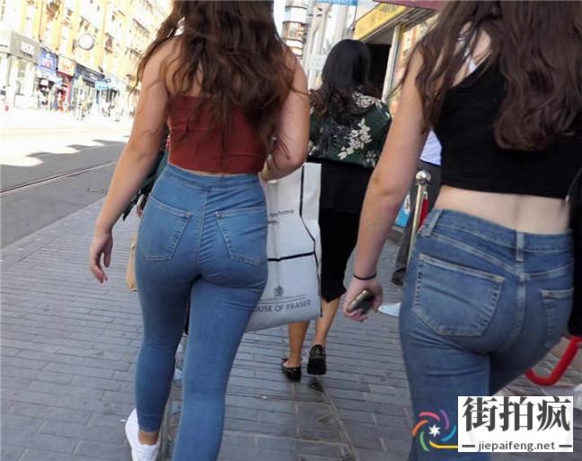 街拍两个蓝色紧身牛仔裤美眉圆润饱满翘臀[MP4/364M]