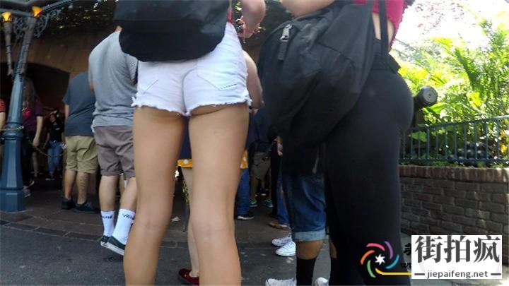 街拍白色牛仔热裤和黑色打底裤两个美女极品圆翘臀[MP4/1G]...