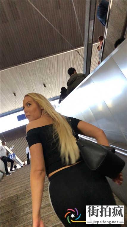 街拍黑色紧身氨纶打底裤金发丰满洋妞极品大屁股[MP4/967M]...