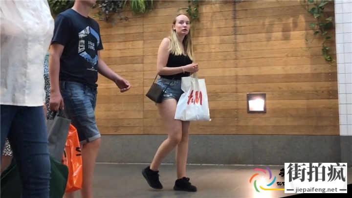 街拍蓝色和黑色牛仔热裤极品饱满圆润翘臀美女[MP4/864M]