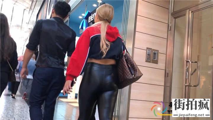街拍金发丰满美眉黑色紧绷皮裤饱满大屁股[MP4/185M]