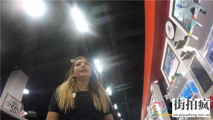 鞋店近拍黑色紧身氨纶裤金发美眉极品美臀[MP4/480M]