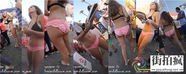跟拍蓝色比基尼和粉色热裤两个美眉性感圆润翘臀[MP4/193M]