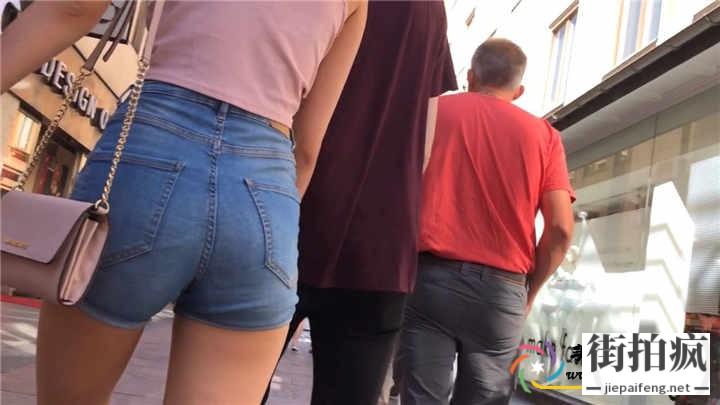 街拍牛仔热裤性感饱满圆润翘臀美眉[MP4/316M]