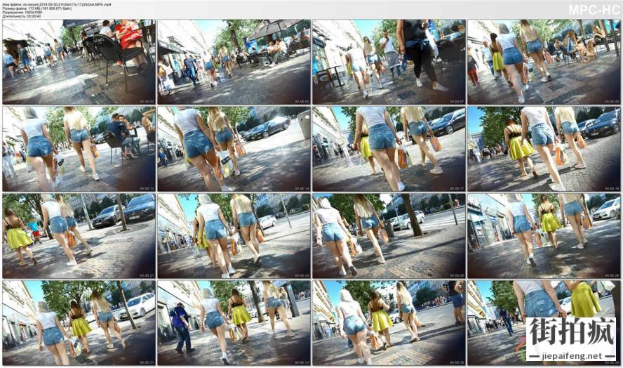 街头跟拍黑色牛仔热裤金发美女极品性感长腿[MP4/628M]...