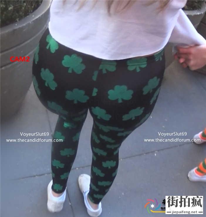 街拍黑绿紧身裤金发美女长腿丰臀[MP4/672M]