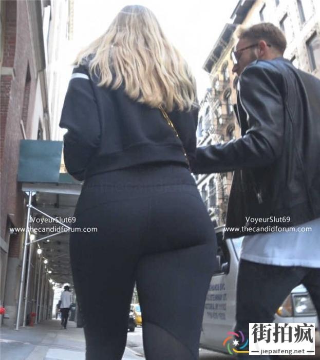 街拍黑色紧绷热裤金发洋妞性感饱满圆润大屁股[MP4/215M]...