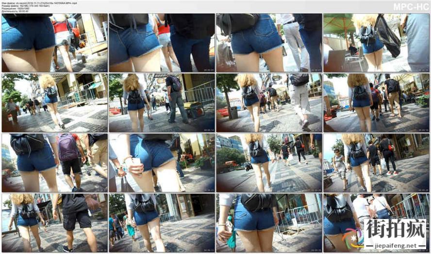 街拍蓝色牛仔热裤金发美女性感长腿圆润翘臀[MP4/203M] ...