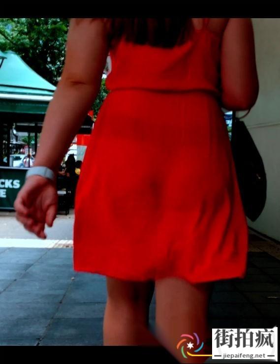 街拍跟拍红色连衣短裙金发漂亮金发美女[MP4/631M]