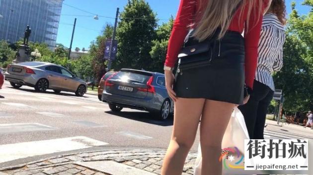 街拍超短包臀皮裙金发美女极品美腿圆翘臀[MP4/216M]