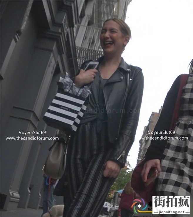 街拍条纹休闲裤金发美女长腿圆润饱满翘臀[MP4/358M]