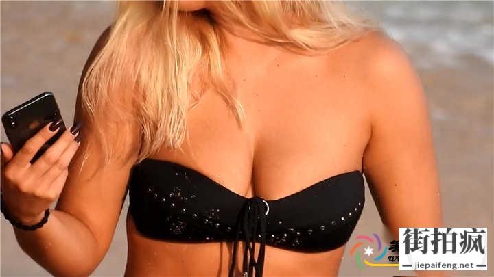沙滩黑色丁字比基尼大胸圆润翘臀美眉[MP4/341M]...