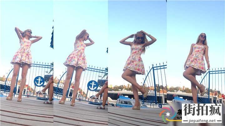 街拍连衣花短裙高跟性感身材美腿金发美女[MP4/797M]