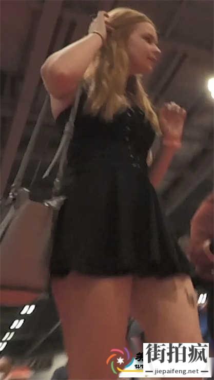 跟拍黑色连衣超短裙金发美女性感美腿[MP4/1.57G]
