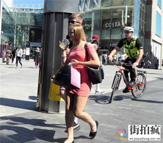 街拍粉色紧身连衣包臀短裙金发少妇性感美臀[MP4/446M]...