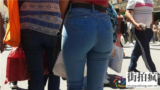 街拍蓝色紧绷牛仔裤洋妞极品圆润翘臀[MP4/405M]