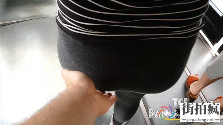 街拍条纹紧身裤熟女性感圆翘臀[MP4/608M]