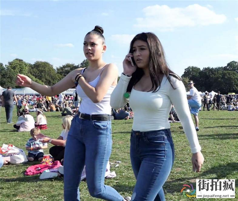 街拍两个牛仔热裤性感长腿圆润翘臀美眉[MP4/180M]