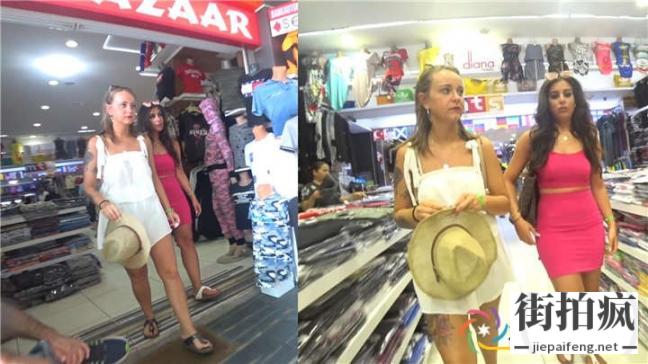 街拍白色和蓝色热裤两个美眉极品美腿圆臀[MP4/228M]
