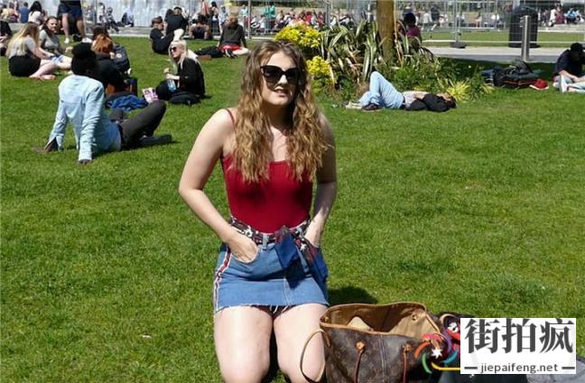 草坪休息的牛仔短裙金发少妇性感白腿[MP4/410M]