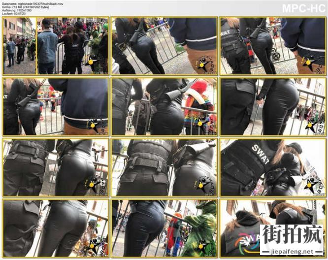 街拍黑色紧绷皮裤洋妞极品饱满圆润翘臀[MP4/713M]