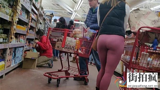超市购物的粉色紧身裤少妇极品圆润翘臀[MP4/145M]