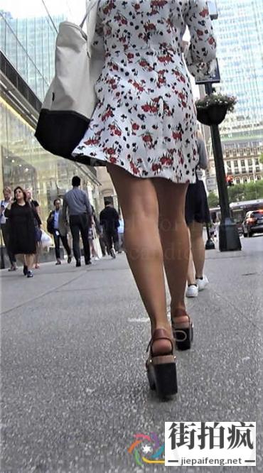 街拍连衣花裙金发OL美眉性感高跟美腿[MP4/444M]