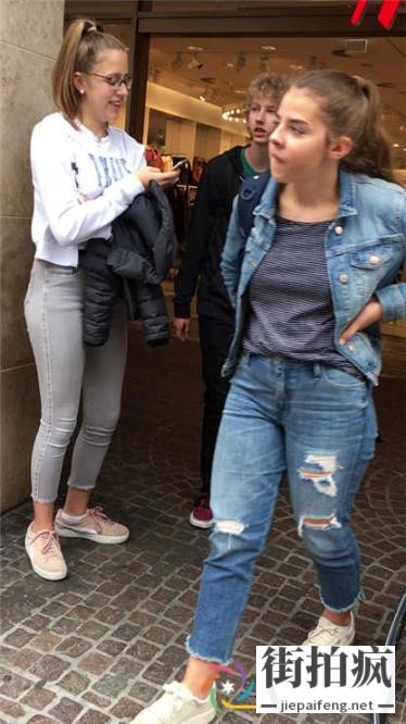 跟拍两个蓝色紧身牛仔裤洋妞性感圆翘臀[MP4/235M]