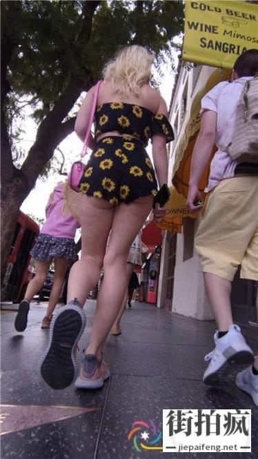 街拍花短裙金发洋妞饱满圆润大屁股[MP4/609M]
