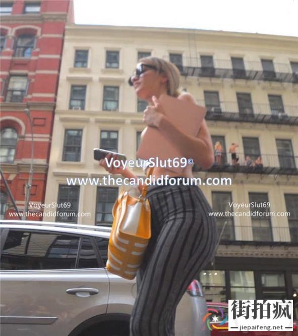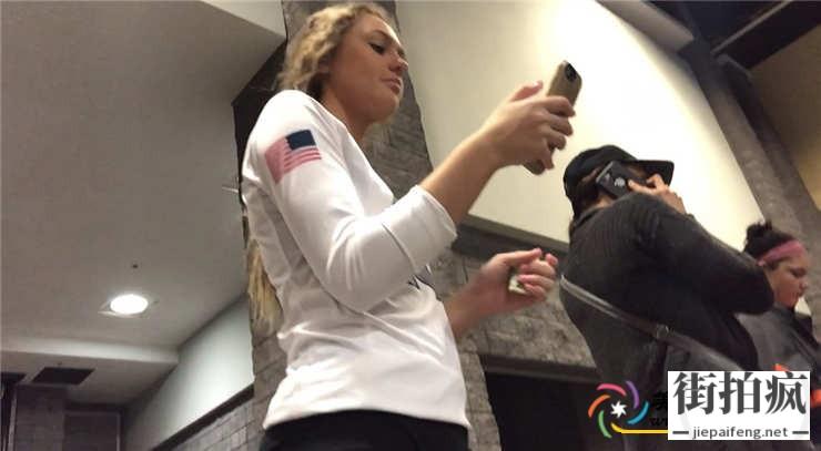 街拍灰色条纹紧身裤高挑身材长腿饱满圆臀金发洋妞[MP4/203M]