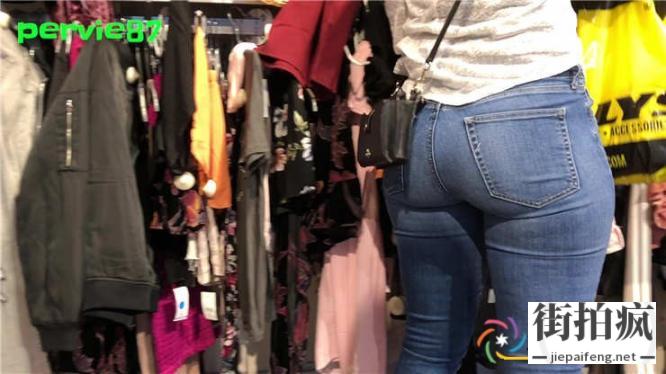 服装店蓝色紧绷牛仔裤洋妞极品饱满宽臀[MP4/201M]...