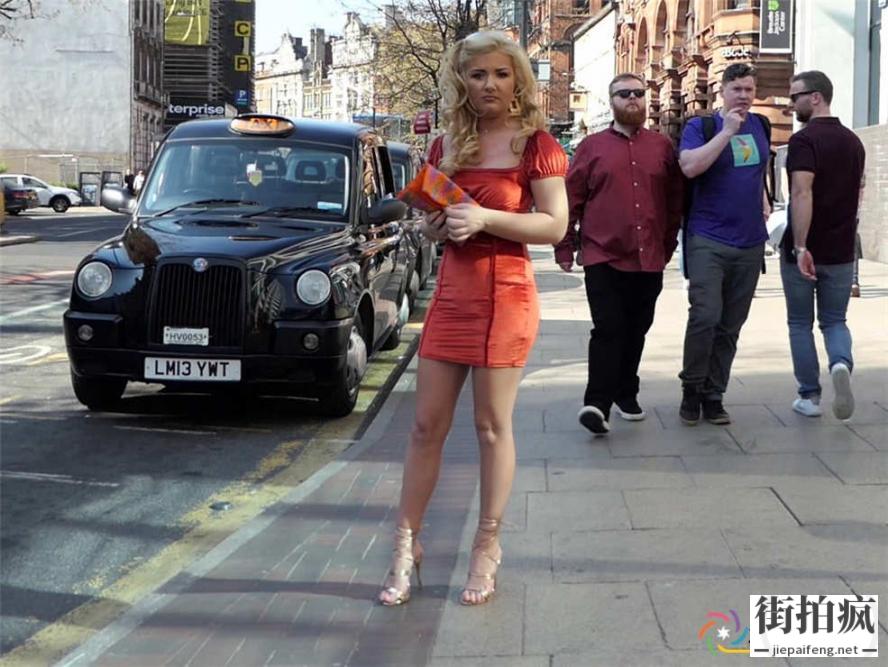 街拍橙色连衣包臀短裙金发OL洋妞饱满翘臀[MP4/498M]...