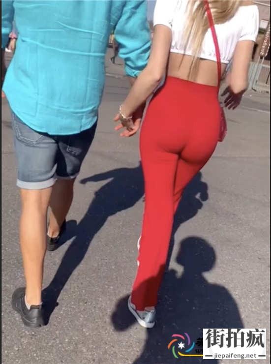 街拍红色紧身裤金发美眉极品美腿饱满圆臀[MP4/521M]...