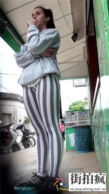 街拍黑色条纹紧身裤洋妞极品饱满圆润翘臀[MP4/311M]