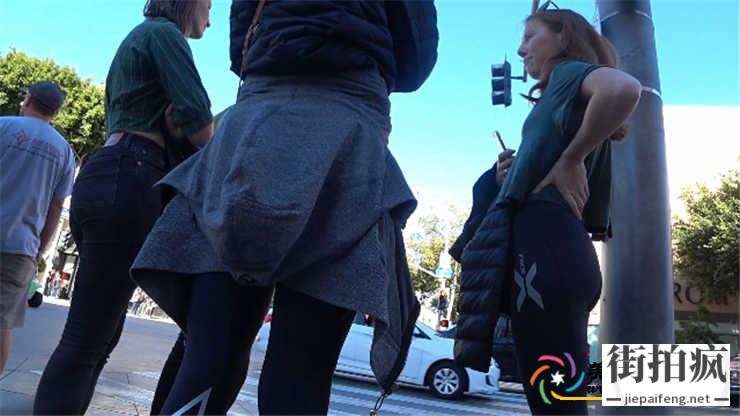 街头跟拍金发洋妞黑色氨纶裤圆润性感大屁股[MP4/483M]