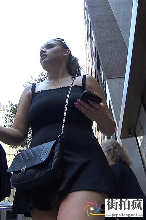 街拍黑色吊带连衣短裙OL洋妞性感大腿[MP4/588M] ...