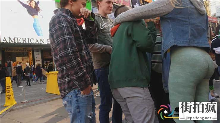 街拍绿色紧身裤性感饱满圆润翘臀妹子[MP4/417M]