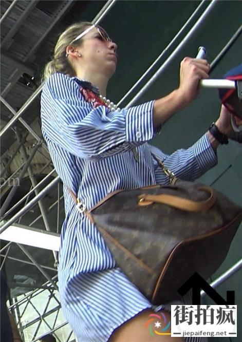 街拍条纹连衣短裙金发少妇性感白腿[MP4/304M]...