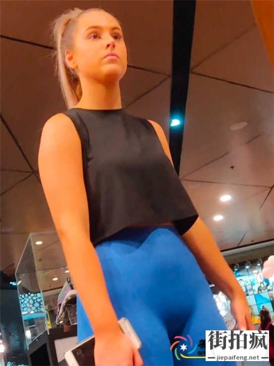 金发马尾辫美眉蓝色紧身瑜伽裤极品前三角性感翘臀[MP4/2.02G]