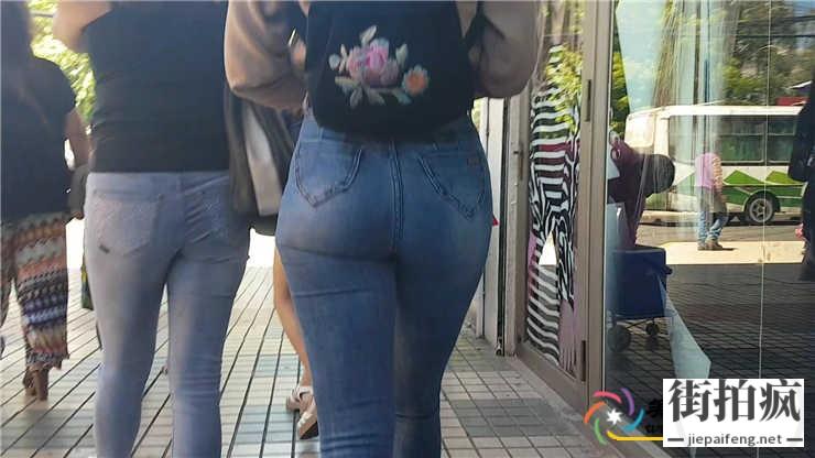街头跟拍蓝色紧绷牛仔裤性感身材洋妞极品饱满圆臀[MP4/462M]