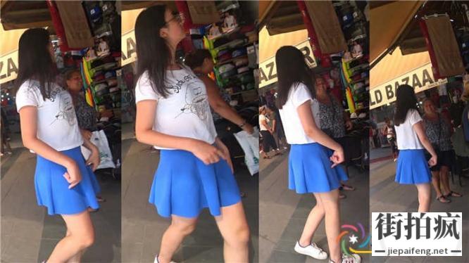 街拍蓝色短裙美眉逛街[MP4/840M]