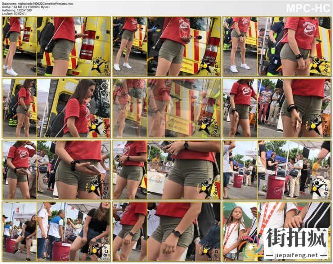 街拍绿色紧绷牛仔短裤美眉性感长腿圆润翘臀[MP4/163M]